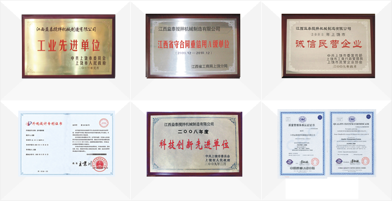 江西益泰攪拌機(jī)械制造有限公司公司榮譽(yù)
